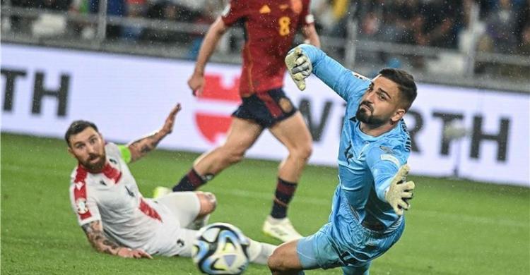 وحاول شاكفيتادزي التصويب من بعيد بكرة قوية، أمسك بها أوناي سيمون (53)، قبل أن يسجل موراتا الهدف الشخصي الثالث له، والخامس لإسبانيا (66).