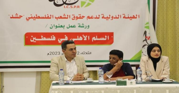 جاء ذلك خلال اللقاء الذي عقدته الهيئة الدولية لدعم حقوق الشعب الفلسطيني “حشد”، بعنوان:” السلم الأهلي في فلسطين”، اليوم الثلاثاء، بحضور ومشاركة عدد من ممثلي مؤسسات المجتمع المدني ونشطاء من شباب والمهتمين.