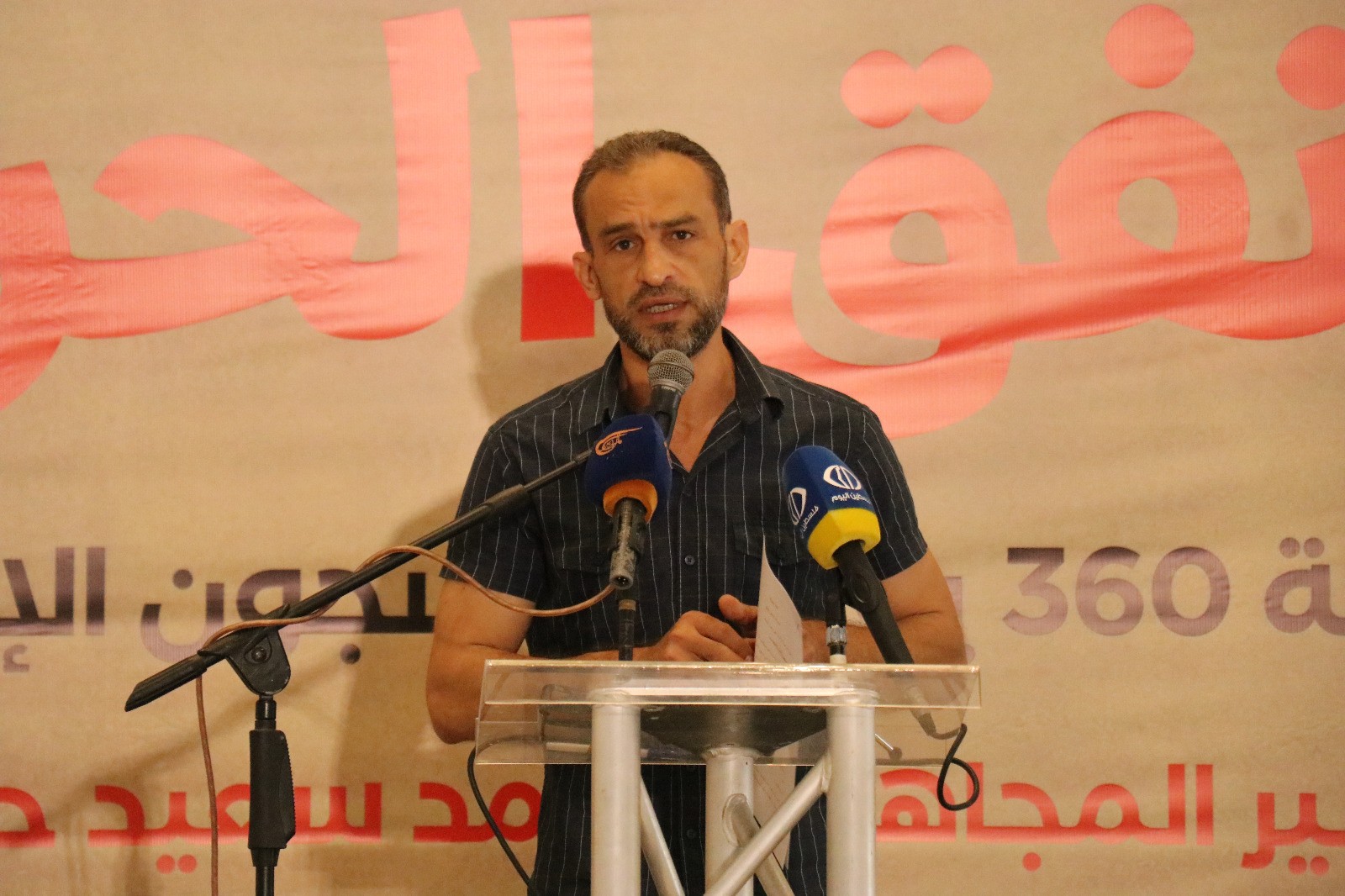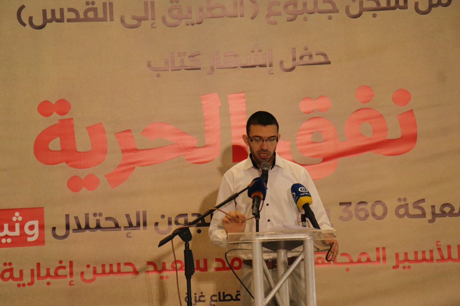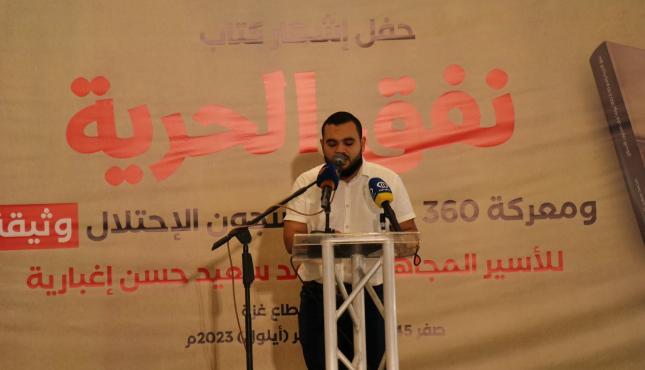 نظمت مؤسسة مهجة القدس للشهداء والأسرى والجرحى ومركز حضارات للدراسات السياسية والاستراتيجية اليوم الأحد حفل إشهار كتاب: "نفق الحرية" ومعركة 360 يومًا في سجون الاحتلال (وثيقة) للأسير القائد: محمد سعيد حسن إغبارية، وذلك في قاعة هيفينز ميوزيكا غرب مدينة غزة.