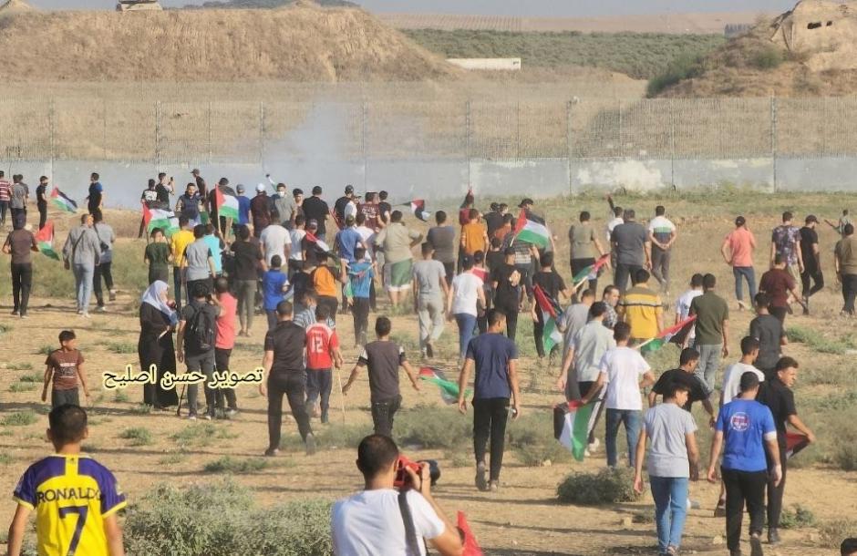 وأشعل الشبان الإطارات قرب السياج الأمني على طول مخيمات العودة شرقي كل من رفح وخانيونس والوسطى وغزة والشمال، كما سمع دوي انفجارات في المنطقة.