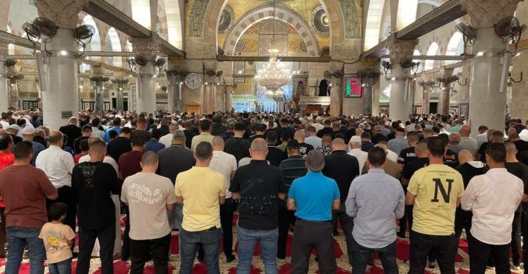 أدى الآلاف من المواطنين، صلاة فجر الجمعة، داخل المسجد الأقصى المبارك.