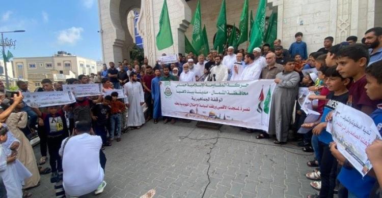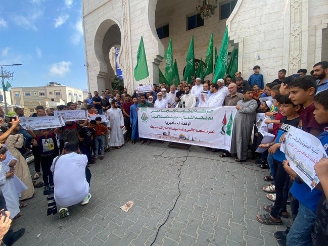 نظمت حركة حماس، الجمعة، وقفة جماهيرية في مدينة بيت لاهيا شمال قطاع غزة نصرة للمسجد الأقصى، ورفضا لسياسة الاحتلال التهويدية بحقه.