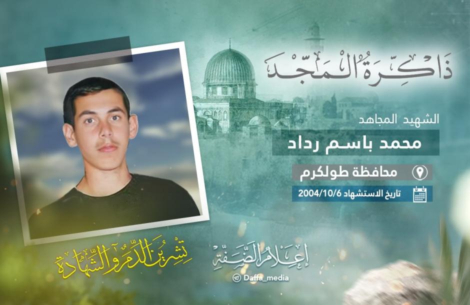 بتاريخ 14 يناير عام 1988م، كانت بلدة صيدا إلى الشمال من محافظة طولكرم على موعد مع فارسها محمد باسم رداد لعائلة كريمة من عوائل فلسطين التي ربته على حب الجهاد والمقاومة، وقد تلقى تعليمه في مدارس البلدة.