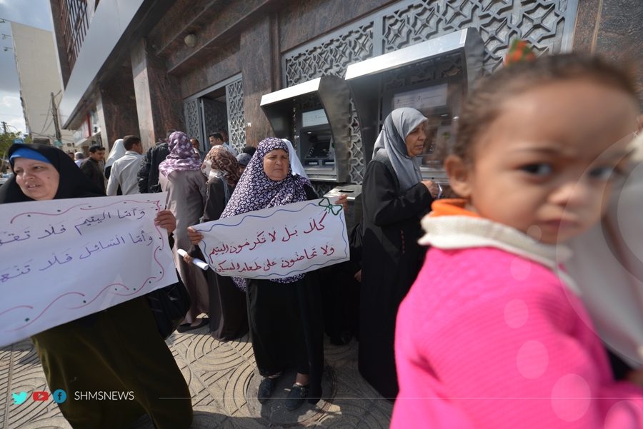 تظاهر العشرات من الأيتام والفقراء والمعاقين أمام مقر بنك فلسطين الرئيس وسط مدينة غزة اليوم الخميس احتجاجًا على سياسة البنك بإغلاق حسابات الجمعيات الخيرية، ورفض استقبال الحوالات والكفالات المالية وصرف المساعدات.
