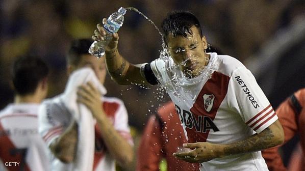 وتوفقت مباراة الإياب بين الفريقين في ملعب "لابومبونيرا" معقل بوكا بين الشوطين، والفريقان متعادلان بدون أهداف، علما أن ريفر فاز ذهابا على أرضه بهدف نظيف.