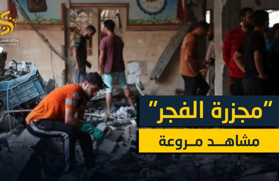 ومن جهته، قال الناطق باسم الدفاع المدني في غزة محمود بصل إن الاحتلال الإسرائيلي قصف مدرسة التابعين في حي الدرج بـ3 صواريخ في مجزرة بحق نازحين كانوا يؤدون صلاة الفجر في المدرسة.