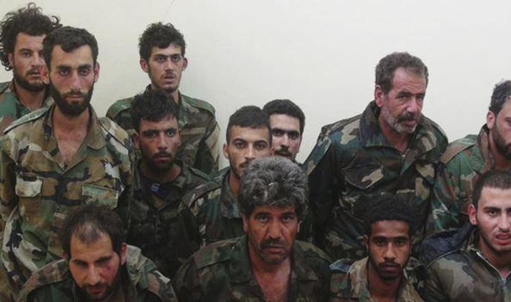 صورة لعدد من جنود النظام أسرهم مقاتلو التنظيم في تدمر