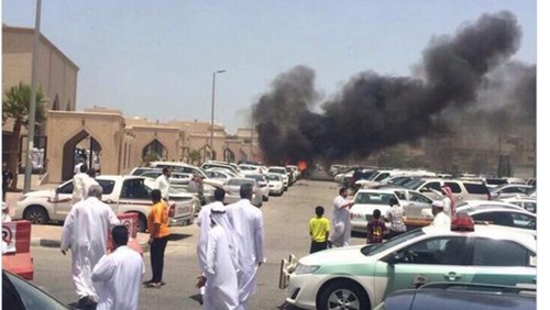 خبر بالفيديو...4 قتلى بانفجار سيارة قرب مسجد بالسعودية و"داعش" يتبني الهجوم