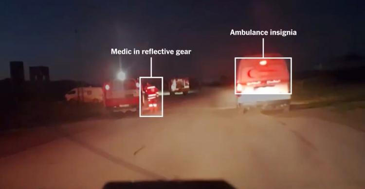 وقالت صحيفة "يديعوت أحرونوت"، إنه "على عكس ادعاءات الجيش الإسرائيلي.. أضواء الطوارىء كانت مفعلة على مركبات المسعفين الذين قتلوا في رفح، شريط فيديو صور على يد واحد من الـ 15مسعفًا الذين اغتيلوا على يد الجيش الإسرائيلي في رفح قبل أسبوعين ووصل لصحيفة نيويورك تايمز".