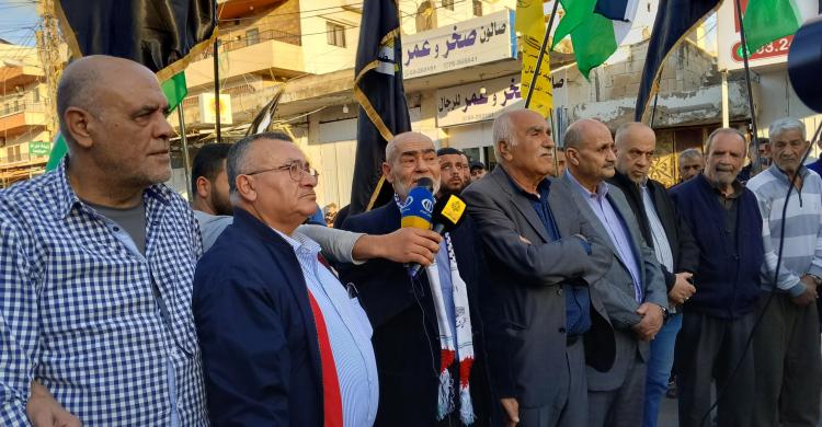 والقى مسؤول لجنة الأسير يحيى سكاف، جمال سكاف، أكد فيها أننا "نلتقي اليوم في ظل تصاعد العدوان الصهيوني على أهلنا الصابرين في قطاع غزة المترافق مع صمت مطبق من الدول العربية والإسلامية والمجتمع الدولي الذين يشاهدون اجساد اخواننا من الاطفال والنساء والشيوخ في غزة تتطاير أمام الاعلام بمشهد لم يعرف العالم مثيلاً له على مر التاريخ.