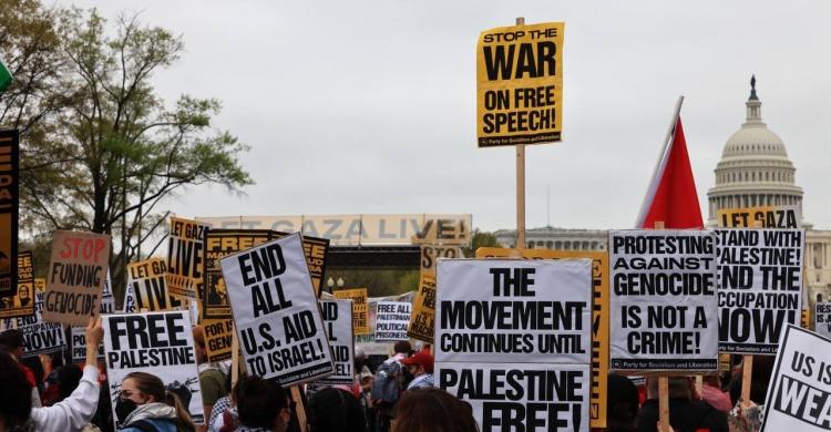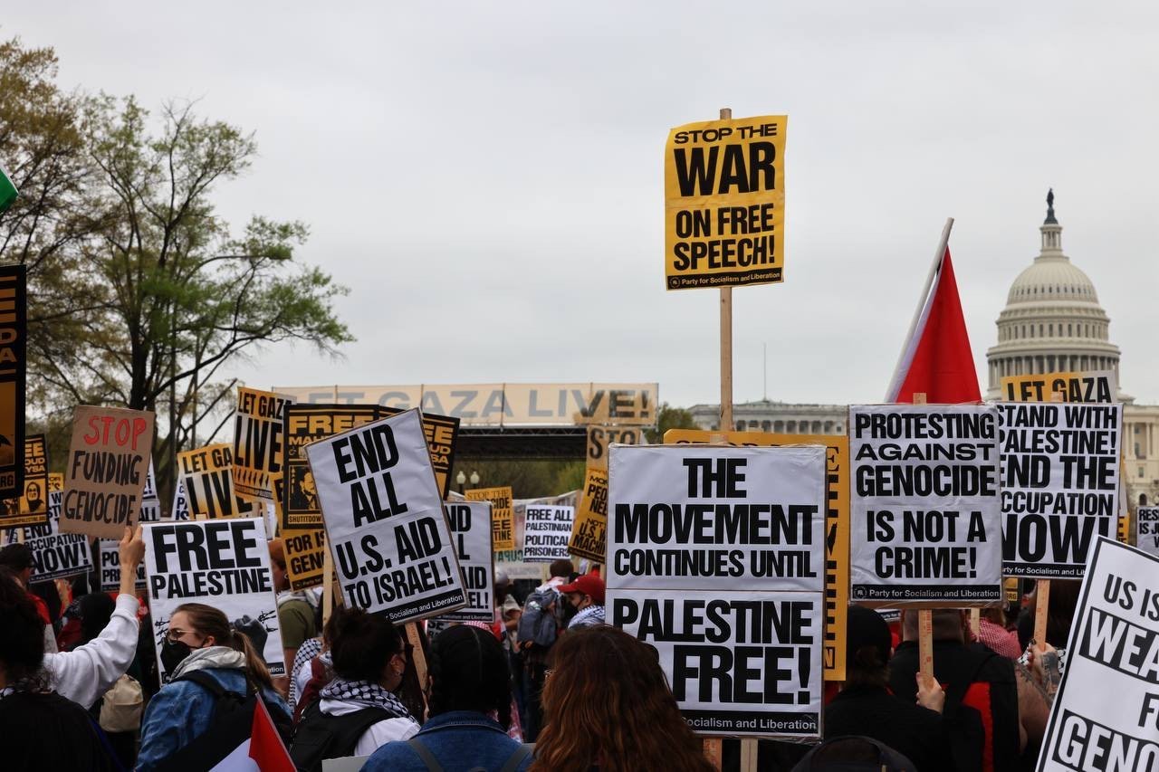 وعبر النشطاء خلال التظاهرة، التي تعتبر من الأضخم منذ تشرين الأول/ أكتوبر 2023،عن رفضهم لاعتقال وملاحقة الطلبة الذين يدعمون الحقوق الفلسطينية في الجامعات الأميركية.