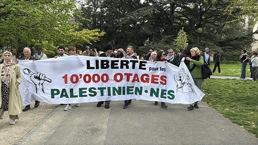 ورفع المحتجون العلم الفلسطيني، ورددوا شعارات باللغات الفرنسية والإنجليزية والعربية، من بينها "الحرية لفلسطين"، "إسرائيل مجرمة"، و"أوقفوا الإبادة الجماعية في غزة".