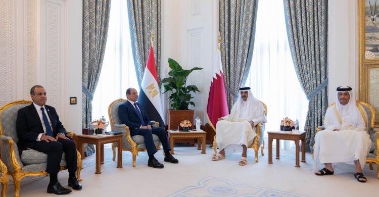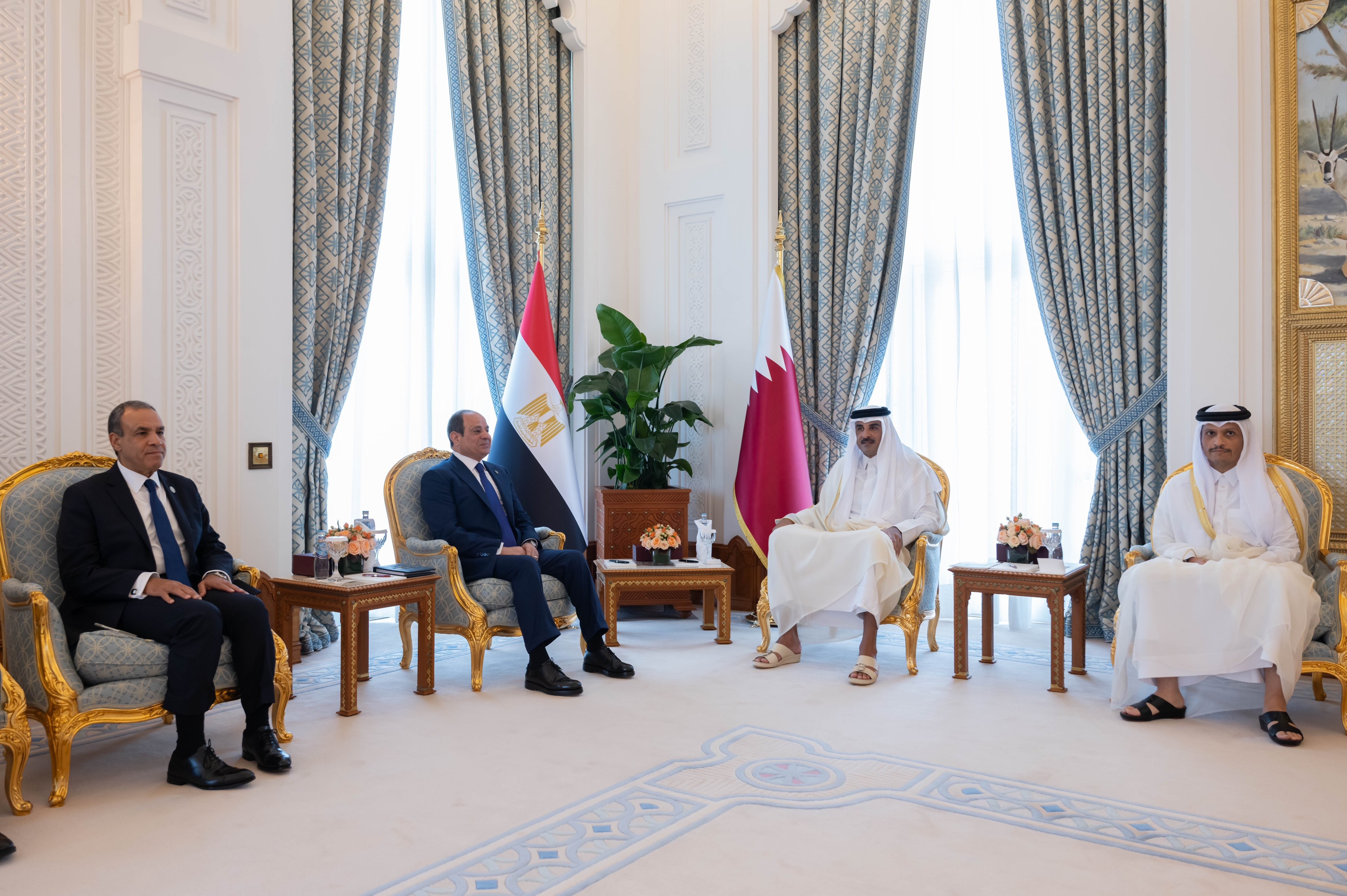 وقال أمير قطر في منشور على حسابه عبر "إكس"، إنه تبادل مع الرئيس السيسي وجهات النظر بشأن التطورات الجارية في المنطقة، مضيفاً "سنواصل جهودنا المشتركة في دعم الأشقاء في قطاع غزة وفلسطين المحتلة تطلعاً إلى إرساء الأمن والسلام المستدام". كما قال إن اللقاء بحث كذلك "آفاق تعزيز العلاقات الأخوية الراسخة بين البلدين، بما يمتلكانه من إمكانات كبيرة لدفع التعاون الثنائي وتوسيع نطاقه في عدة مجالات".
