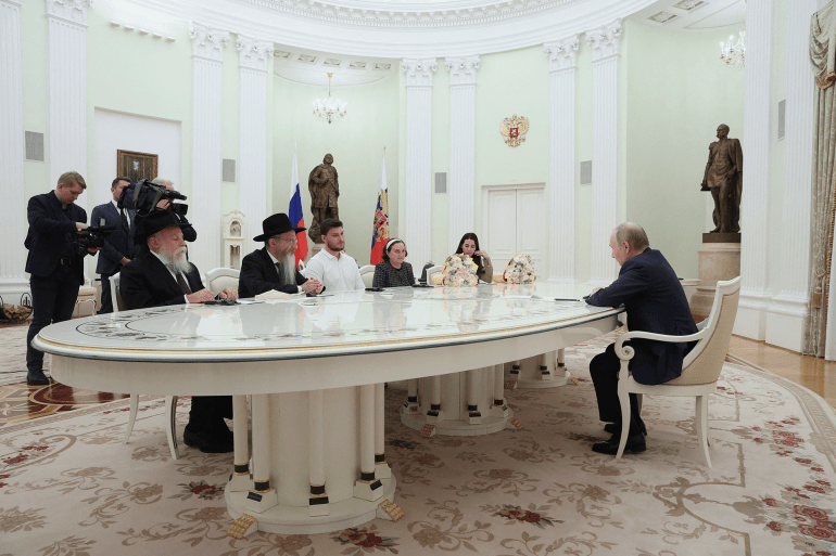 التقى الرئيس الروسي فلاديمير بوتين يوم الأربعاء برعايا روس كانوا محتجزين في قطاع غزة بعد هجمات حركة حماس في أكتوبر/ تشرين الأول 2023 على إسرائيل، وقال إن العلاقات طويلة الأمد بين موسكو والفلسطينيين ساعدت في ضمان حريتهم.