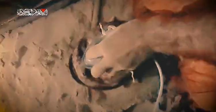 ويُبيِّن المقطع المصور قيام عناصر القسام بالحفر بأيديهم ومعدات الحفر البسيطة؛ في الوقت الذي كان ينادي فيه أحدهم بلغة عبرية :"هل تسمع؟"، بحثاً عن أسرى صهاينة أحياء.