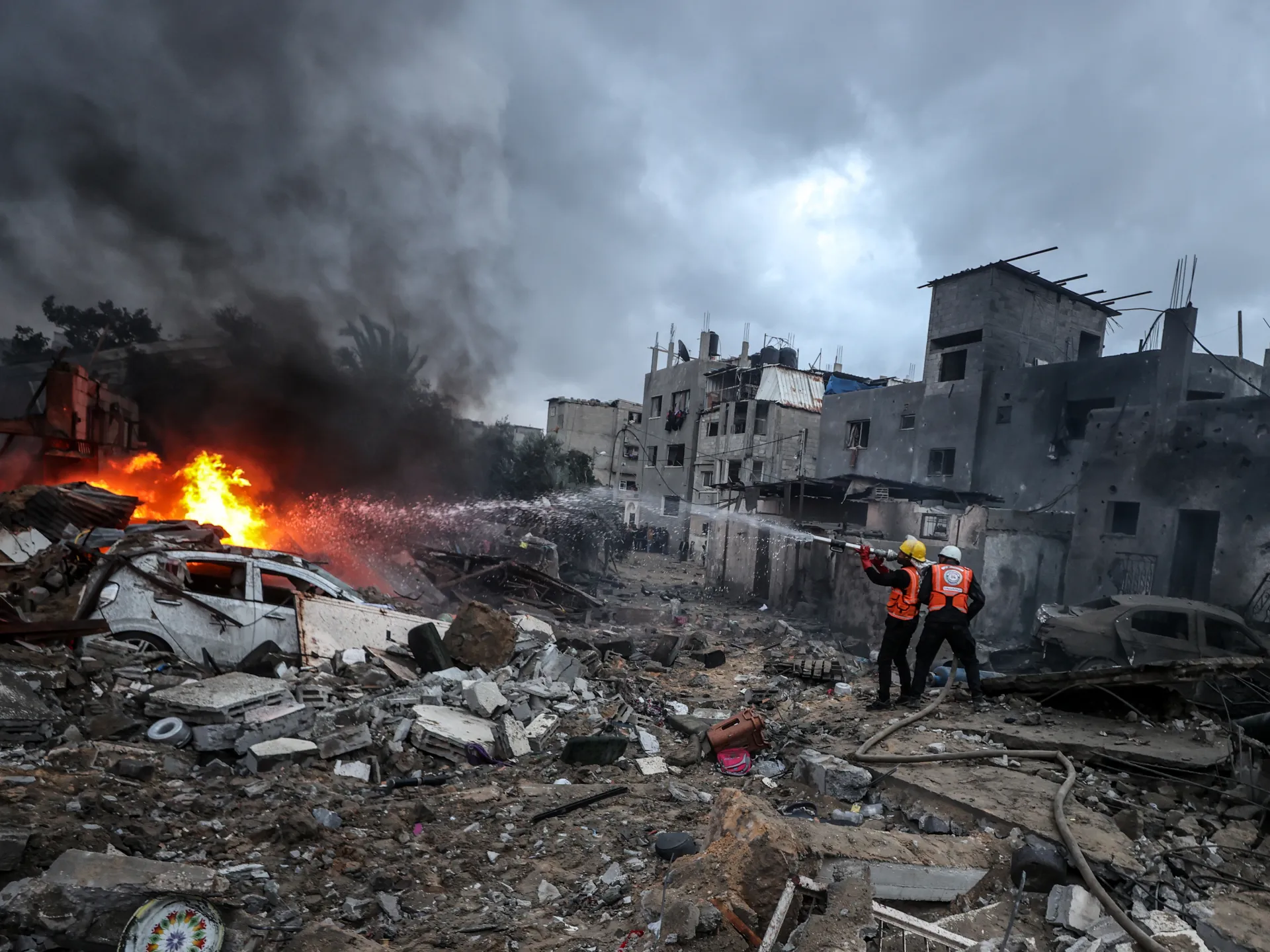 وفي شمال مدينة غزة، استشهد ستة مواطنين جراء غارات متفرقة استهدفت مناطق في بلدة جباليا.