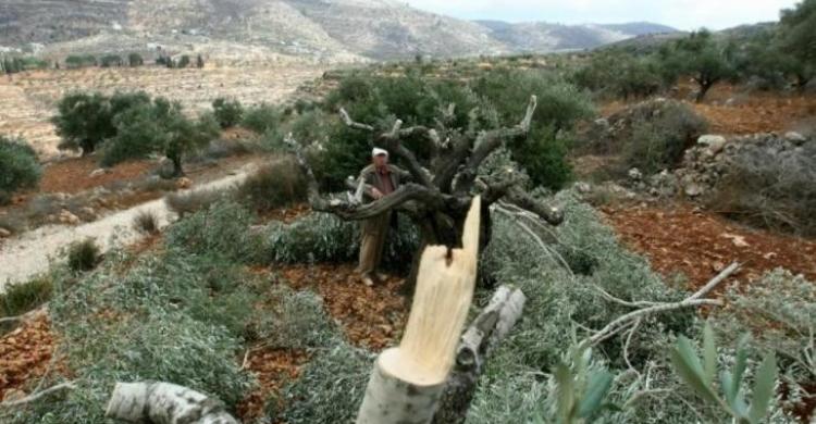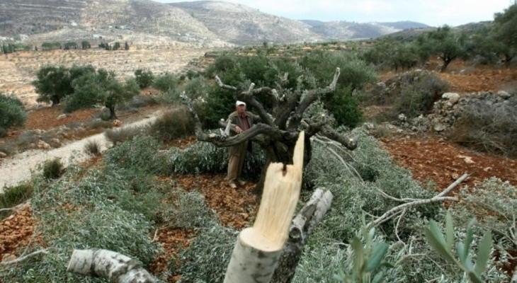 مستوطنون يقطعون 100 شجرة زيتون ويعتدون على مزارعين غرب سلفيت