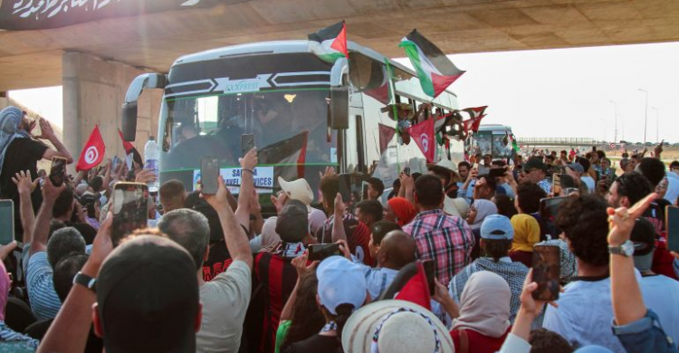 وكانت قافلة الصمود البرية -التي تنظمها تنسيقية العمل المشترك من أجل فلسطين– قد انطلقت صباح الاثنين من شارع محمد الخامس وسط العاصمة تونس، في تحرك شعبي لكسر الحصار المفروض على غزة.