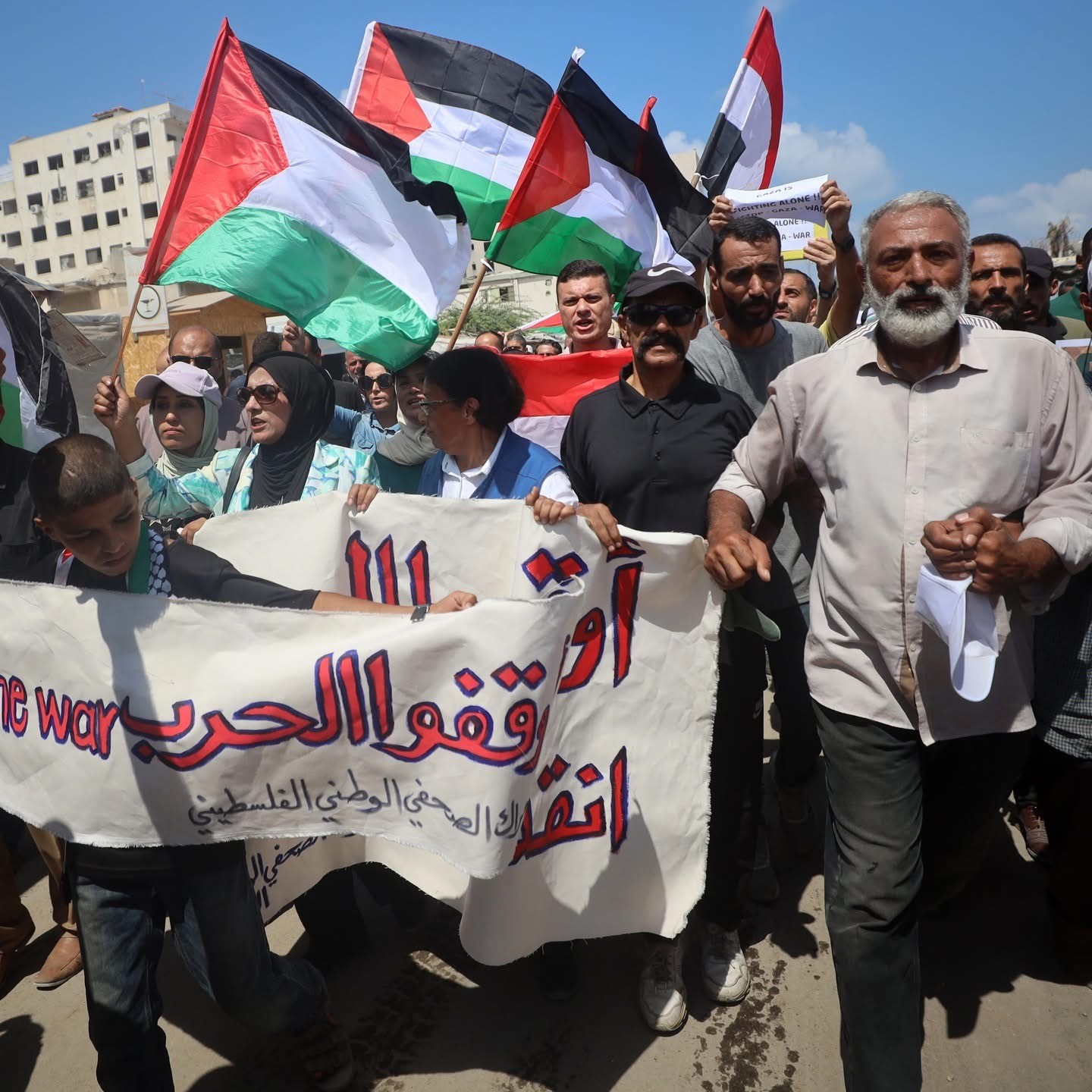 اوقفوا الحرب .. مظاهرة في غزة لوقف الابادة وقف الحرب