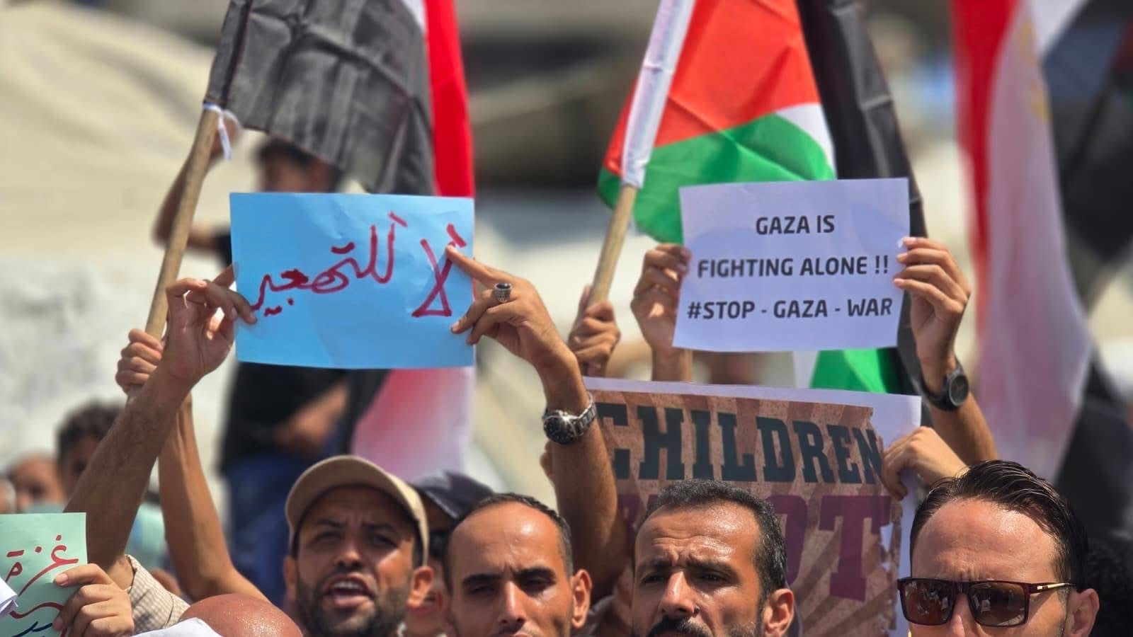 "أوقفوا الإبادة، يكفي قتل وتدمير، غزة لنا ولن نرحل"، رسائل مهمة صدحت بها حناجر الغزيين اليوم الخميس خلال مظاهرة حاشدة دعت لها نقابات فلسطينية أمام مركز رشاد الشوا غرب مدينة غزة، تزامنا مع ترقب الساعات القادمة لرد إسرائيلي حاسم على موافقة حركة حماس والفصائل الفلسطينية على مقترح مبعوث الولايات المتحدة الأمريكية في الشرق الاوسط ستيف ويتكوف.