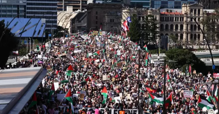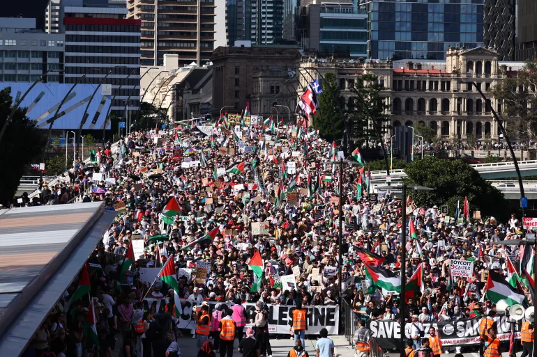 آلاف المتظاهرين خلال مسيرة مؤيدة للفلسطينيين في بريسبان الأسترالية