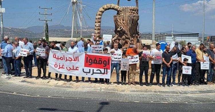 وفي عرّابة، تظاهر العشرات من أهالي المدينة، عند دوار "يوم الأرض"، احتجاجًا على استمرار حرب الإبادة على غزة، وسياسة التجويع الممنهجة، لمطالبة بوقف الحرب.