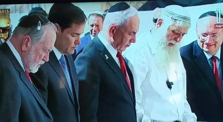 نددت محافظة القدس، اليوم الأحد، باقتحام رئيس حكومة الاحتلال الإسرائيلي بنيامين نتنياهو، ووزير الخارجية الأمريكي ماركو روبيو، والسفير الأمريكي مايك هاكابي لساحة حائط البراق في القدس المحتلة، وأدائهم طقوسًا تلمودية فيها.