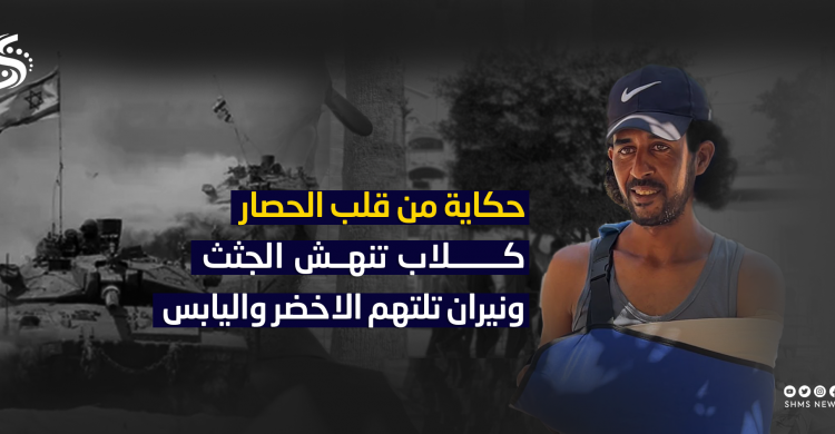 بحث أحمد داخل المكان بهدوء حتى وجد 20 لتر من المياه المالحة التي لا تصلح للشرب وبعض المعلبات، تناول أحمد القليل من الطعام وهو يقول: "بدأ الليل وبدأت أهوال يوم القيامة، دوت الانفجارات بشكل مكثف وسمعت صوت المجنزرات تقترب مني، يرافقها صوت الكلاب وهي تنهش بجثث الشهداء"، هذا من أكثر الأشياء رعب عاشها أحمد.