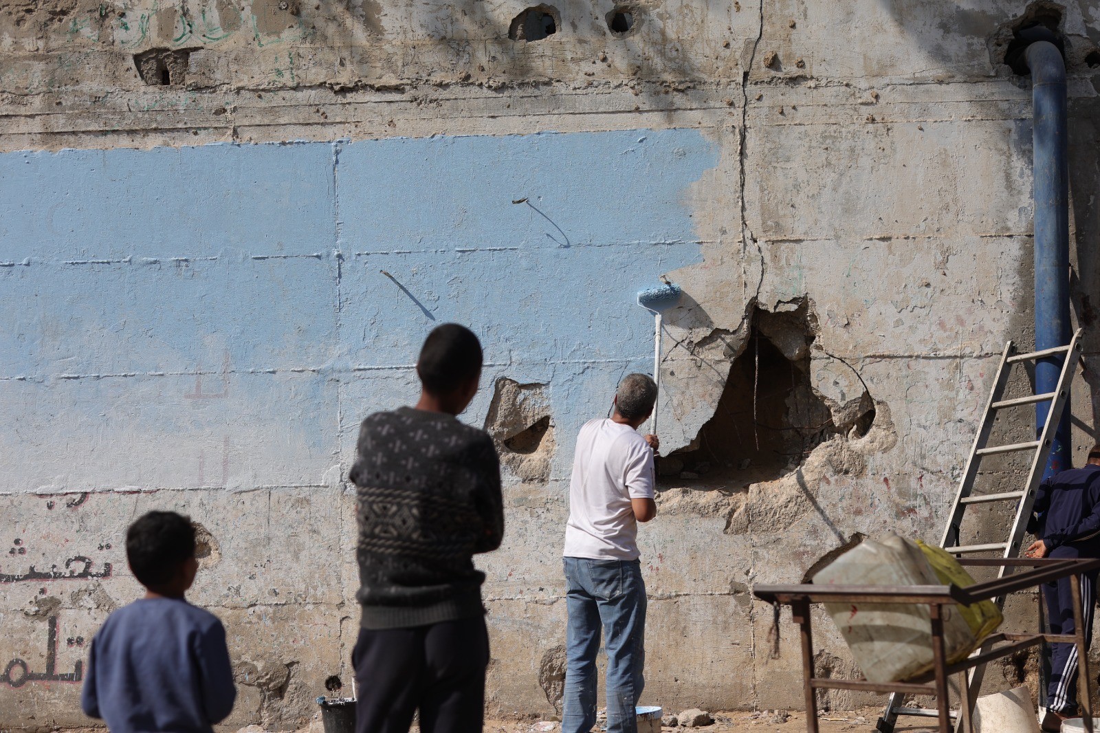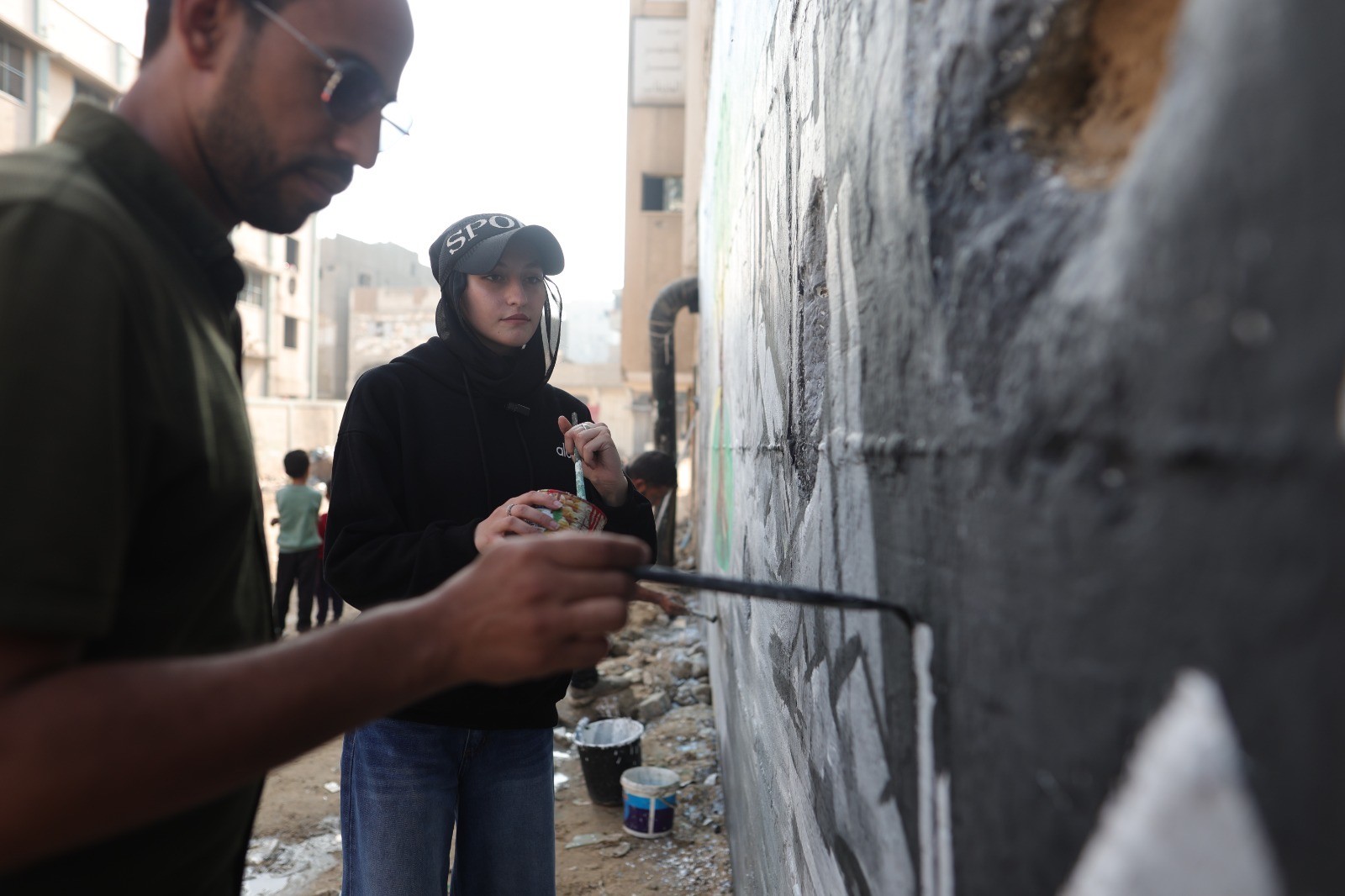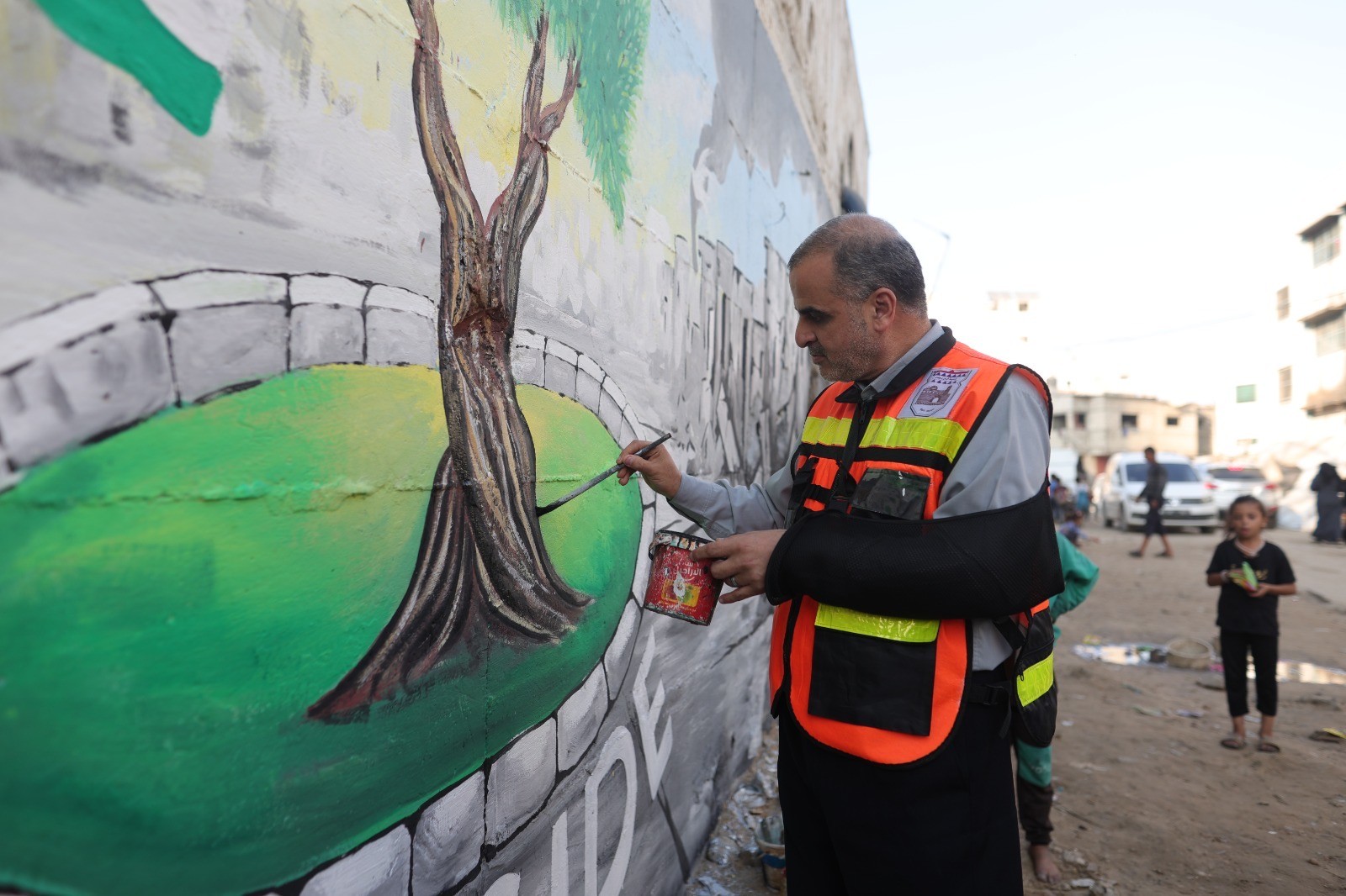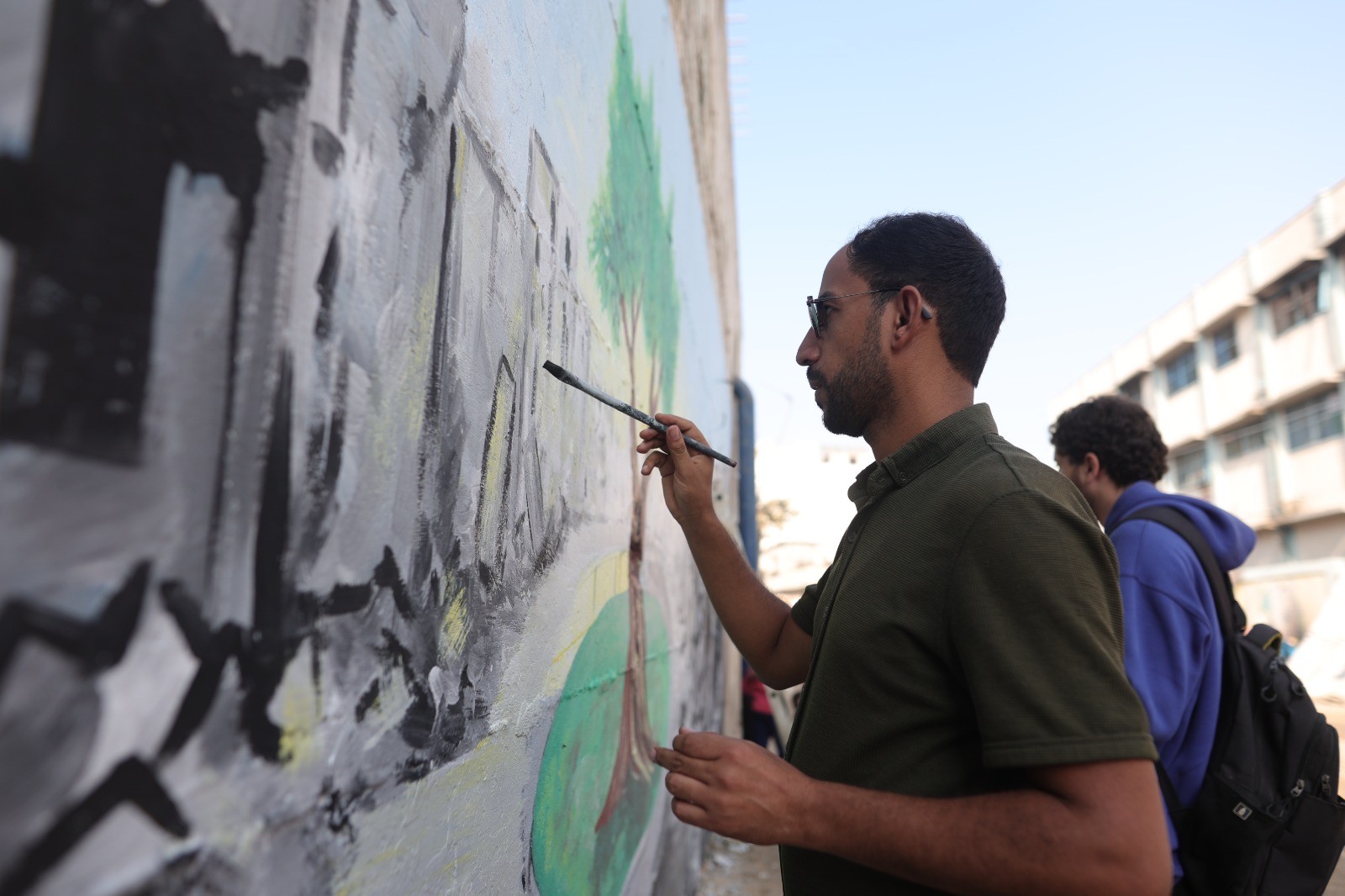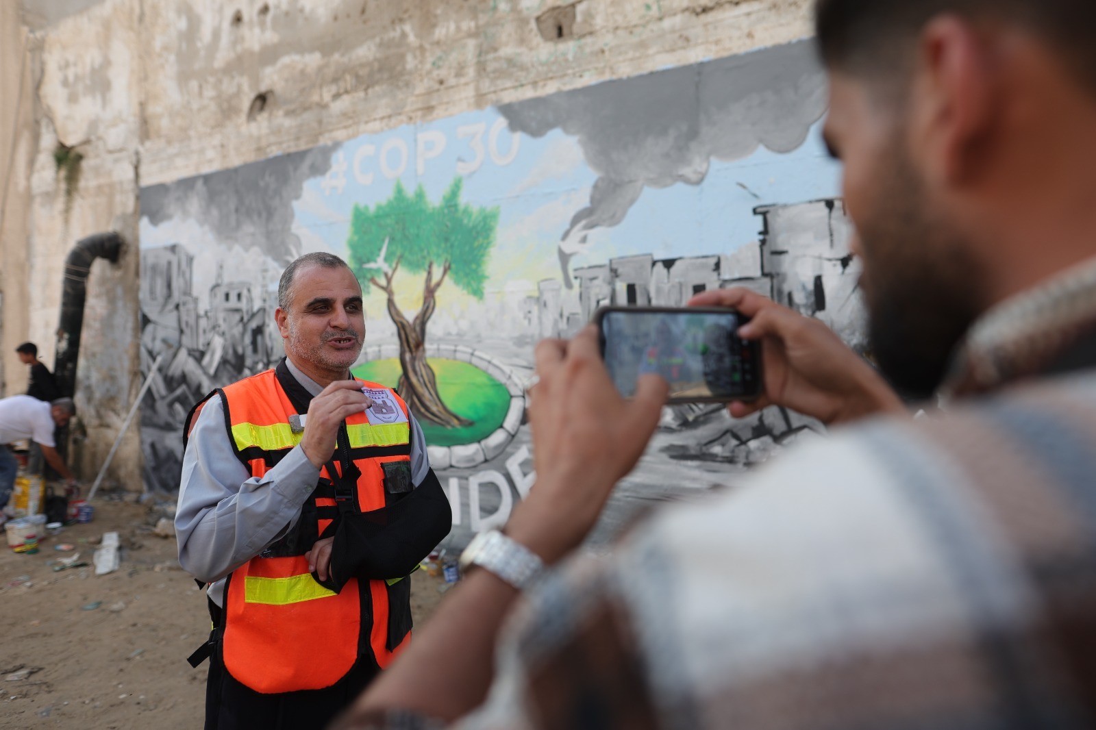 بالصور نشطاء من غزة يرسمون جدارية تندد بالإبادة البيئية وتوجه رسالة إلى قادة مؤتمر المناخ في البرازيل