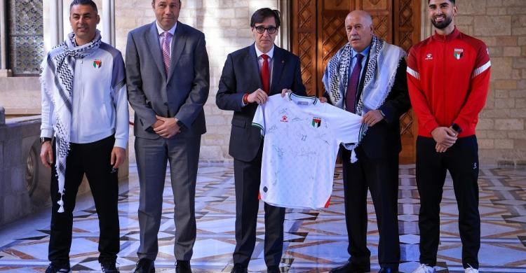 استقبل رئيس إقليم كتالونيا، سلفادور إيلا ، وفدًا من بعثة المنتخب الوطني الفلسطيني لكرة القدم، برئاسة أمين سر اللجنة المركزية لحركة "فتح"، رئيس الاتحاد الفلسطيني لكرة القدم، الفريق جبريل الرجوب، حيث وضعه في صورة آخر المستجدات على الساحة الفلسطينية.