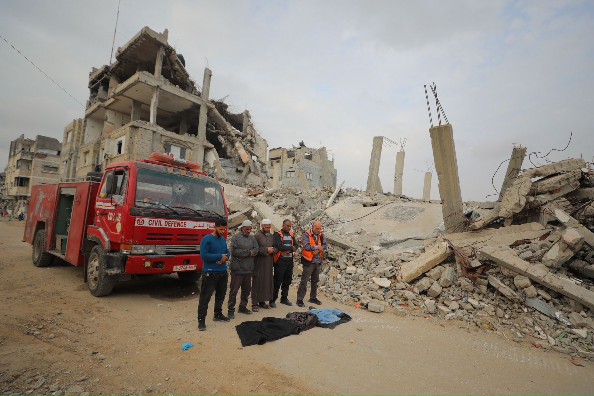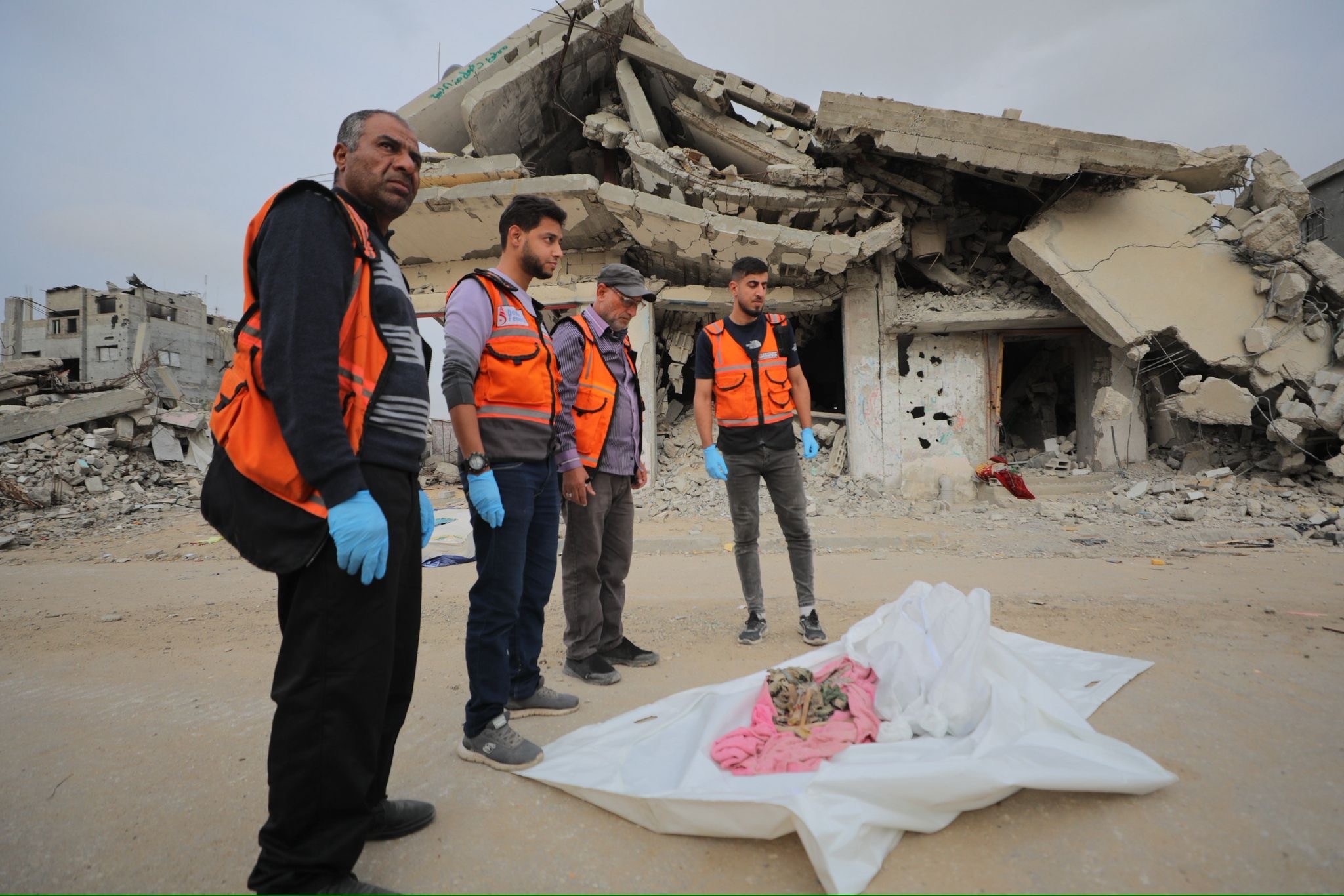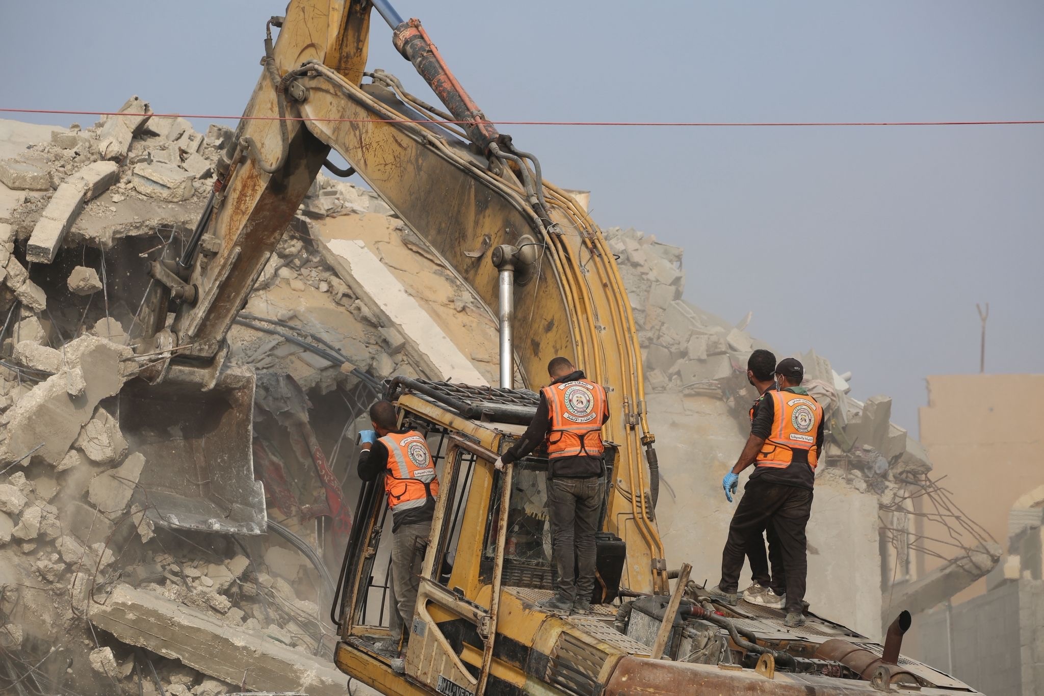 الدفاع المدني تباشر ببدء عمليات انتشال رفات الشهداء من تحت انقاض المنازل في مخيم البريج بدعم من الصليب الاحمر الدولي وللجنة المصرية ،