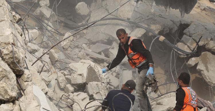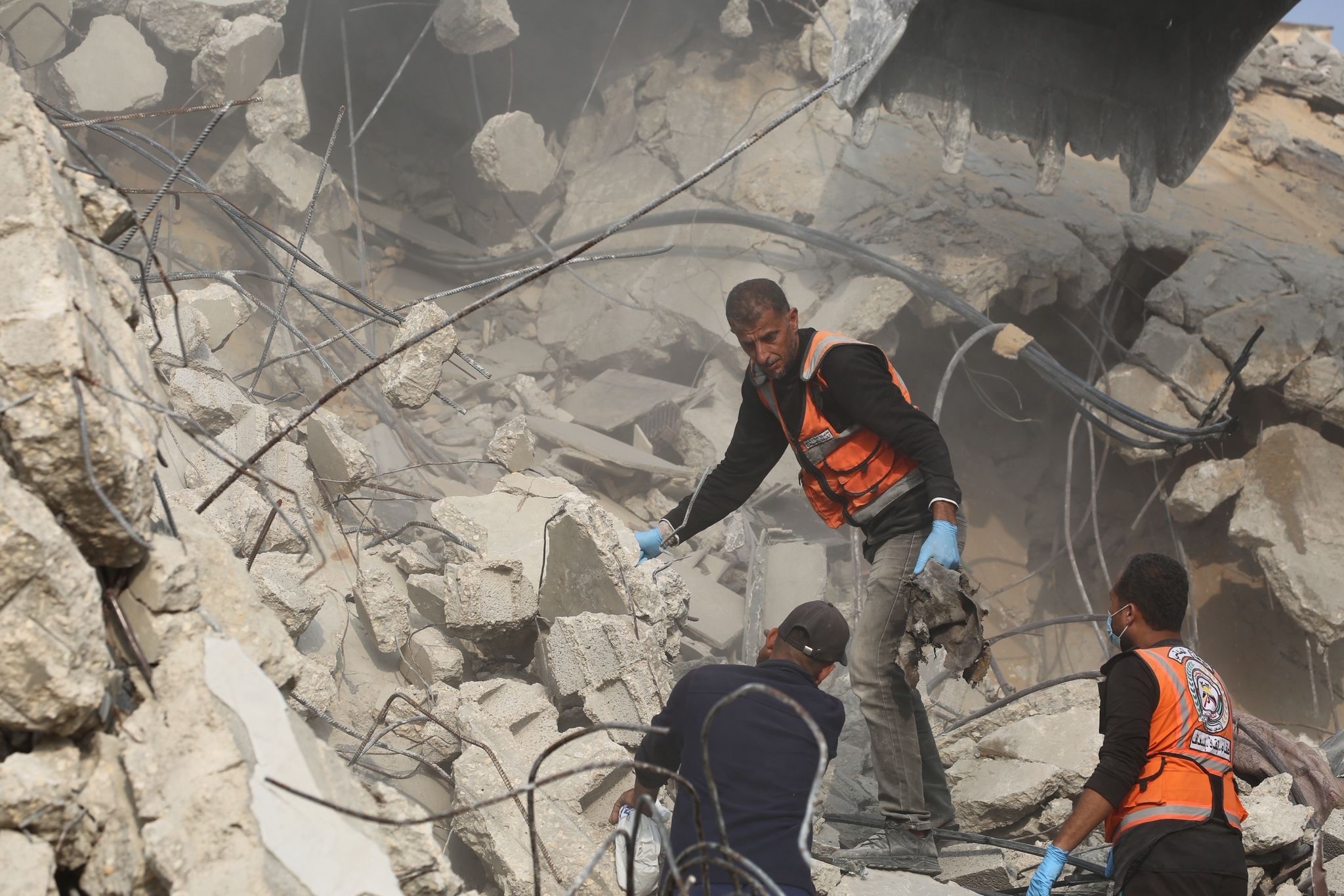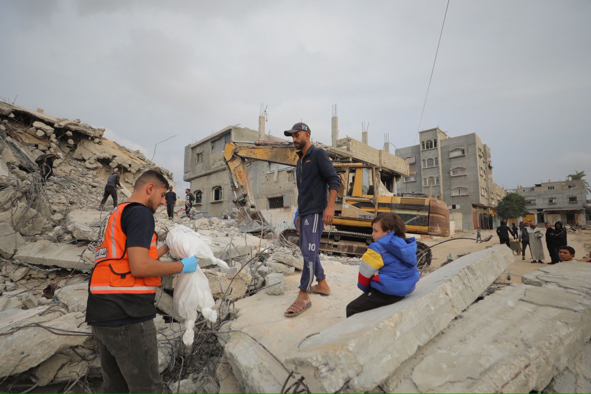 الدفاع المدني تباشر ببدء عمليات انتشال رفات الشهداء من تحت انقاض المنازل في مخيم البريج بدعم من الصليب الاحمر الدولي وللجنة المصرية ،
