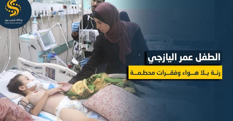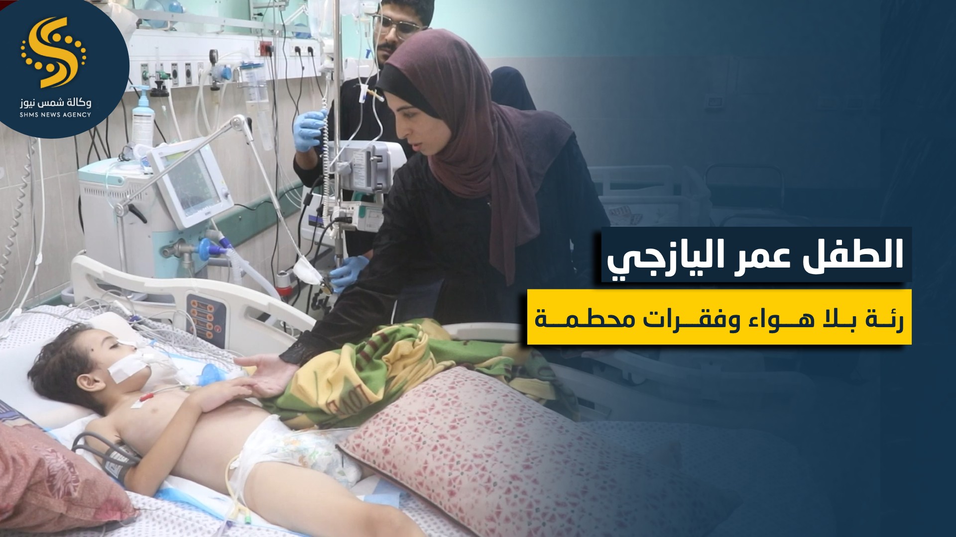 على سريرٍ بارد داخل عناية الأطفال بمستشفى شهداء الأقصى وسط قطاع غزة، يرقد الطفل "عمر اليازجي" بلا حول ولا قوة، يتشبث بأنفاس متقطعة تصله عبر جهاز التنفس الصناعي، فيما تجلس والدته قرب رأسه تمسح جبينه، وتراقب ارتجاف صدره، وتحاول جاهدة أن تُطمئن قلبها قبل أن تُطمئن ابنها، فجسده الصغير الذي أنهكه الإصابة، لم يعد يشبه ذلك الطفل الذي كان يركض في أروقة البيت ويضحك بصوتٍ يملأ المكان.