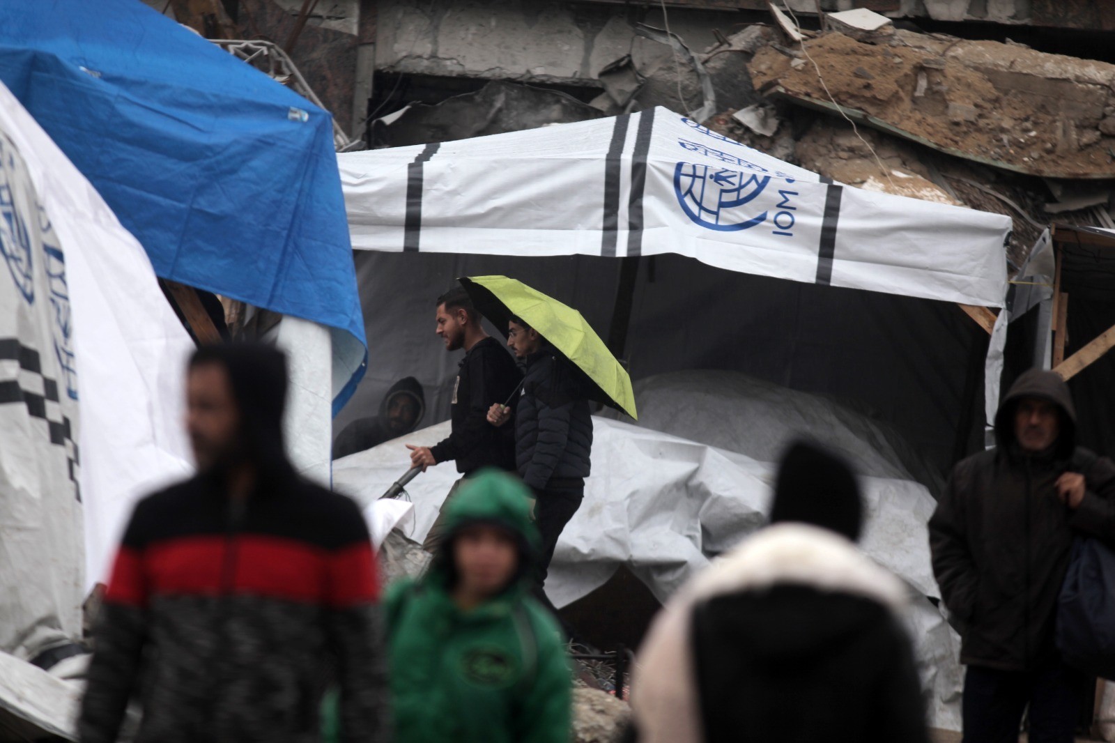 وكان الدفاع المدني الفلسطيني أعلن مساء أمس الجمعة عن وفاة نحو 14 نازحًا بينهم أطفال رضع جراء البرد القارص خلال المنخفض الجوي، لافتًا إلى أن عددًا من المباني المدمرة جراء الحرب والقصف، انهارت بالكامل بفعل الأمطار والسيول الجارفة.