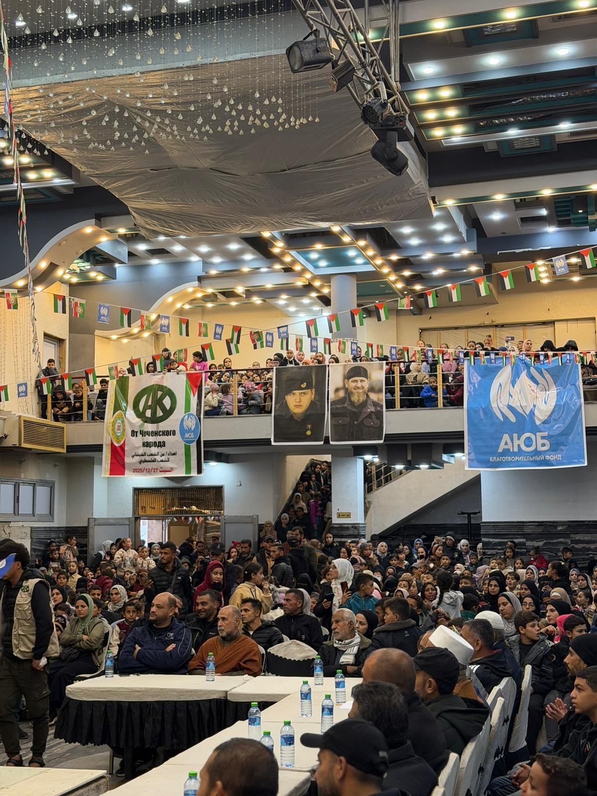 في مشهدٍ إنساني مؤثّر يجسّد عمق التضامن مع الشعب الفلسطيني، وتحت رعاية فخامة رئيس جمهورية الشيشان رمضان قاديروف، وبتمويل كريم من مؤسسة أيوب الخيرية وشعب الشيشان، نُظِّم حفل ترفيهي مميّز لأبناء الشهداء حمل عنوان «الشيشان لن تترك فلسطين»، بحضور جماهيري واسع لعوائل الشهداء.