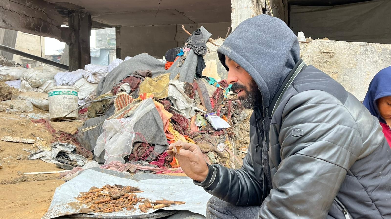 أزال محمود الركام الثقيل بعيدا عن منزله، وعبء الحجارة في أكياس فارغة ووضعها على حدود منزله، يلفت إلى أنه تمكن من انتشال شقيقه وزوجته وطفليه؛ لكنه توقف بعد اشتداد الحرب.