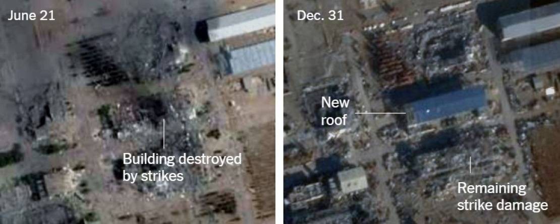 ووفقا لتحليل أجرته "نيويورك تايمز" لصور الأقمار الصناعية؛ يقدّم التفاوت في وتيرة إعادة الإعمار مؤشرات حول أولويات إيران العسكرية في ظل حشد الولايات المتحدة لقواتها بالقرب منها، ودراسة ترامب لخيارات عسكرية جديدة.