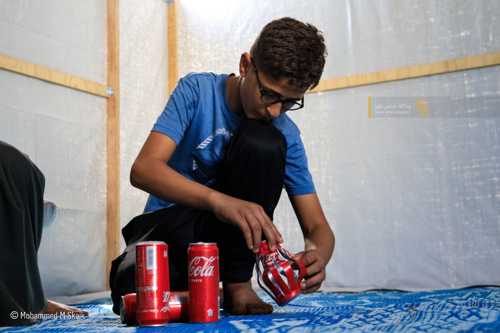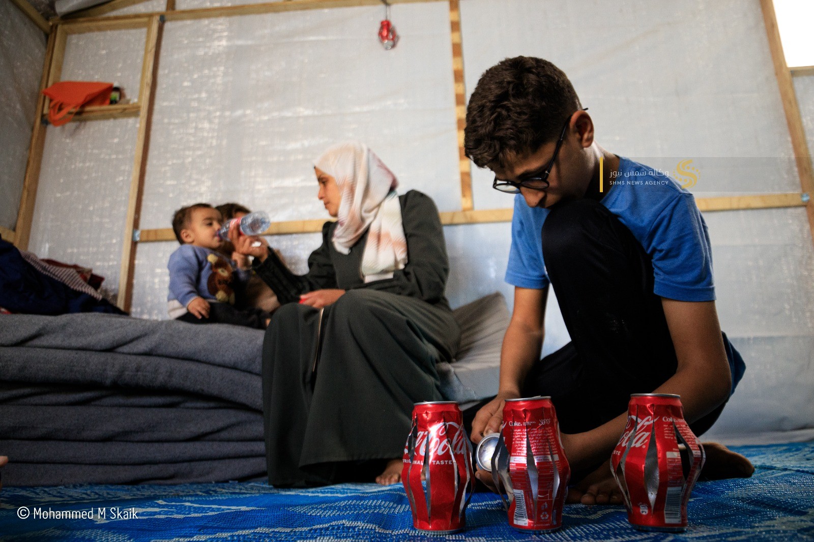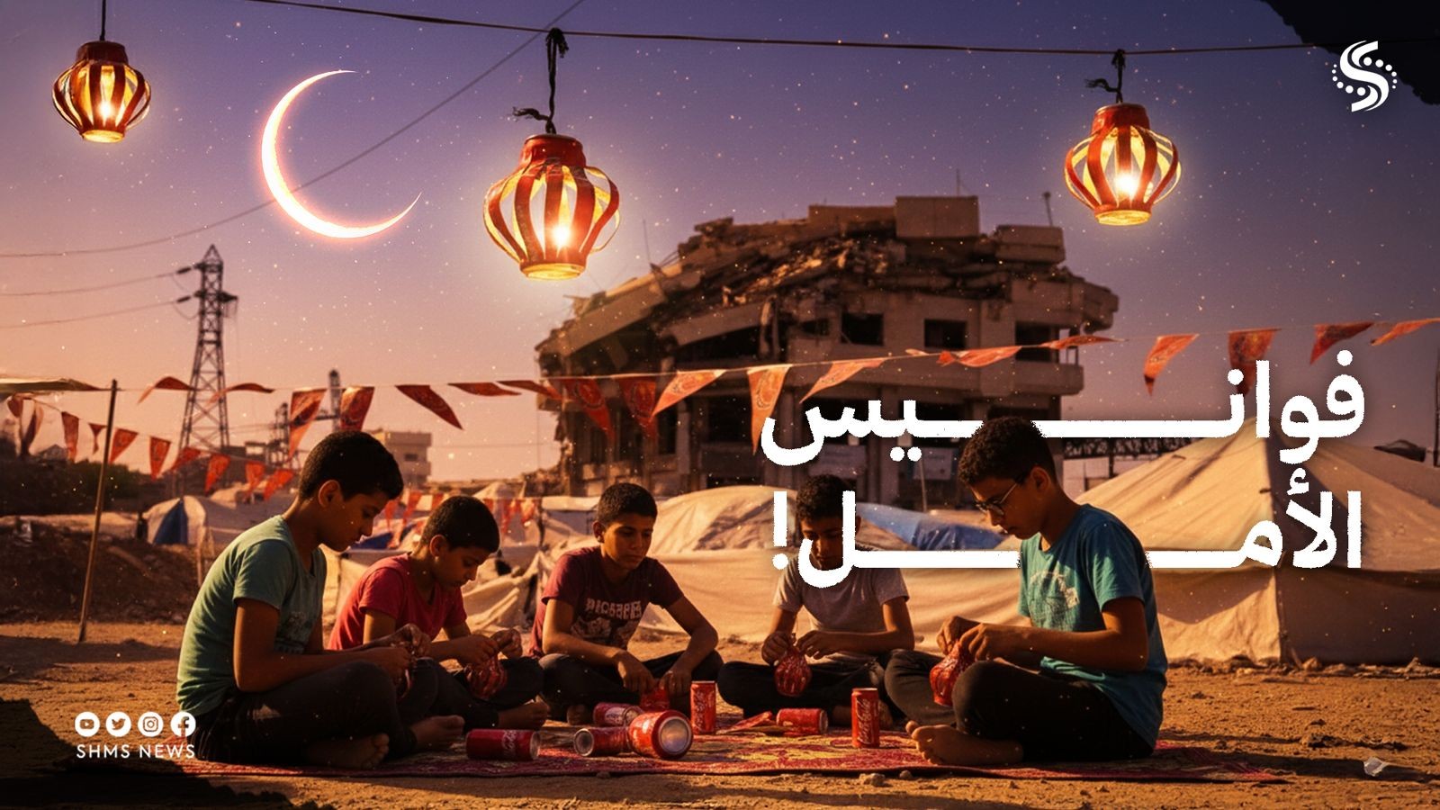 يقول بابتسامة خجولة "رمضان كان يجمعنا في بيتنا ونعلّق الزينة”، ويضيف وهو يجمع العلب على شكل فانوس “هالسنة ما في بيت… بس بدنا نحس إنو لسه عنا رمضان”.