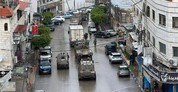وأفادت مصادر محلية، بأن أعداداً كبيرة من الآليات والشاحنات العسكرية، ترافقها فرق من جنود المشاة، اقتحمت المدينة عبر حاجز بوابة "نتساني عوز" غرباً، وجابت عدداً من الشوارع والأحياء الرئيسية، لا سيما الحي الشرقي ووسط المدينة وشارع نابلس المعروف بـ"شارع البنوك"، قبل أن تتجه نحو مخيمي طولكرم ونور شمس.