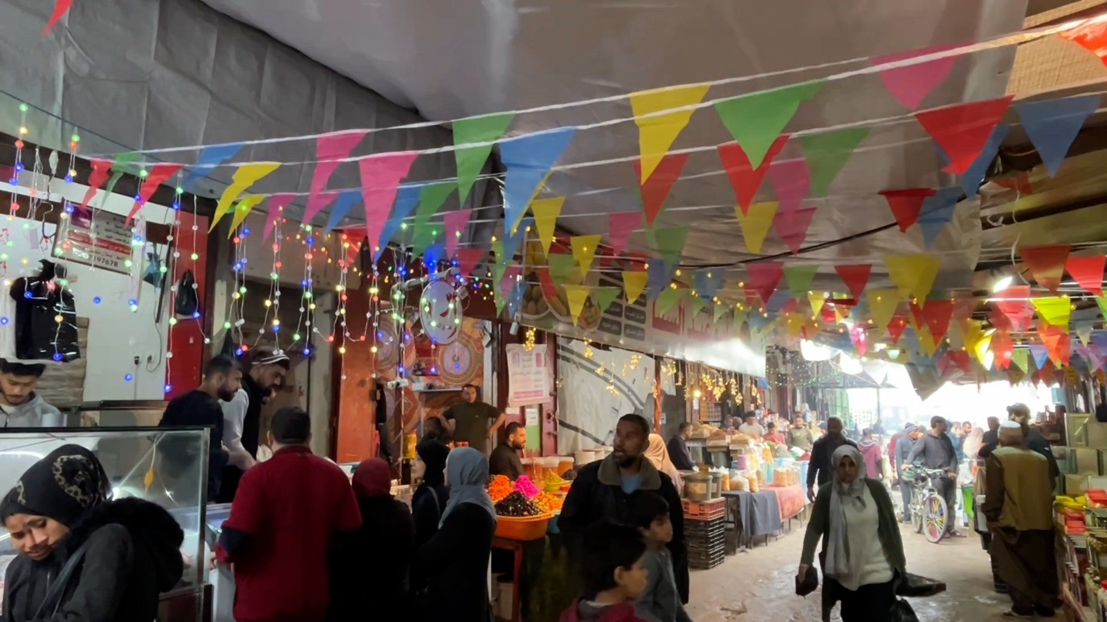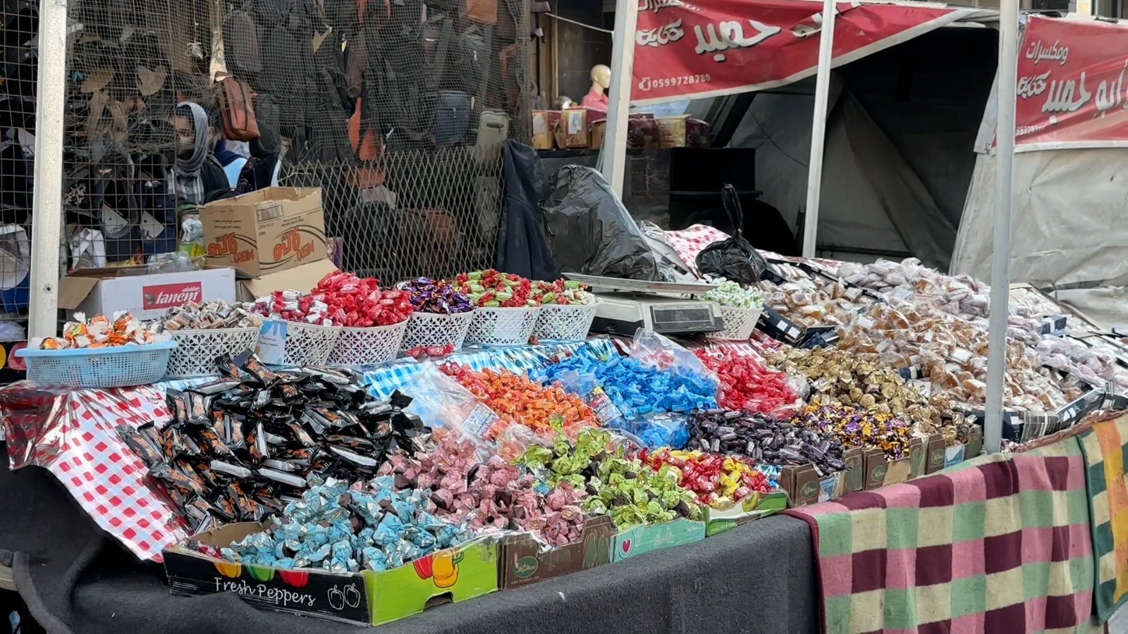 ورغم الظروف الصعبة، لا تزال بعض المحلات التجارية وأصحاب البسطات، سواء الملابس أو الحلويات، تعرض بضائع محدودة من ملابس الأطفال والنساء والرجال، إلا أن التجار يؤكدون أن الكميات أقل من المعتاد بسبب صعوبة إدخال البضائع إلى القطاع.