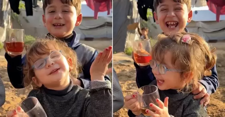 في مشهد يفيض بالبراءة، خطف مقطع فيديو لطفلين داخل أحد مخيمات النزوح في قطاع غزة الأنظار على منصات التواصل الاجتماعي، عندما ظهرا وهما يغنيان للشاي بفرح طفولي وعفوية لافتة، مستلهمين مطلع أغنية أم كلثوم الشهيرة "إزاي أوصف لك يا حبيبي إزاي" من أغنية "ألف ليلة وليلة".