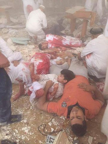 وقد أظهرت صور بثها ناشطون عددا من ضحايا التفجير وقد كست ملابسهم الدماء، كما أظهرت حجم الدمار الكبير الذي لحق بالمسجد، في حين تجمّع العشرات أمام المسجد وسط حالة من الهلع.