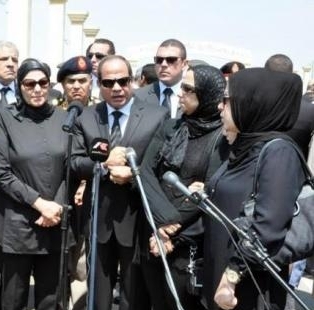 وقال السيسي لقضاة ووكلاء نيابة التفوا حوله بعد الجنازة: "لا المحاكم بهذه الطريقة وهذه الظروف ستنفع، ولا القوانين في هذه الظروف ستنفع.. هذا الكلام ينفع مع الناس العاديين".