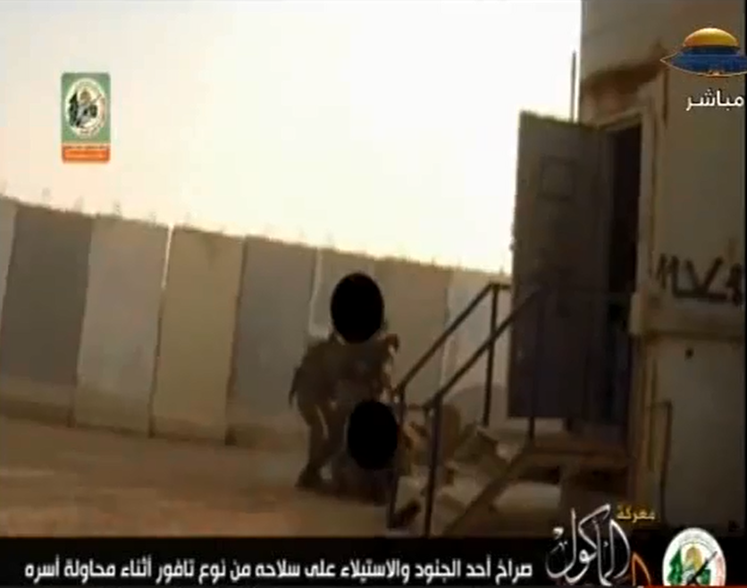 وبث القسام خلال العدوان شريط فيديو لاقتحام قواته الموقع العسكري الإسرائيلي، وكانت من ضمن المشاهد مشهد لثلاثة عناصر من القسام يضربون جنديًا إسرائيليًا بأعقاب بنادهم وهو ملقى على الأرض داخل الموقع، ولم يشر الإصدار لمصير الجندي.