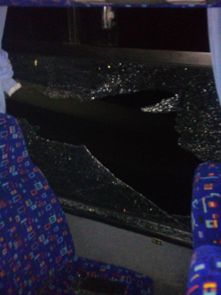 وقعت 3 إصابات طفيفة بصفوف المواطنين بعد إعتداء مستوطنين قرب حزما على حافلة تقل وفداً من أهالي بلدة دورا توجهوا لتقديم واجب العزاء لأهل الشهيد الرضيع علي دوابشة بنابلس مساء اليوم.