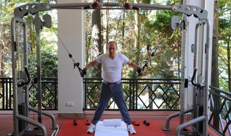نشر الكرملين صورا للرئيس الروسي فلاديمير بوتين وهو يؤدي تمارين في صالة للألعاب الرياضية مع رئيس الوزراء ديمتري مدفيدف، بهدف تعزيز صورة بوتين كشخص قوي البنية مفتول العضلات في وقت تتراجع فيه شعبيته.