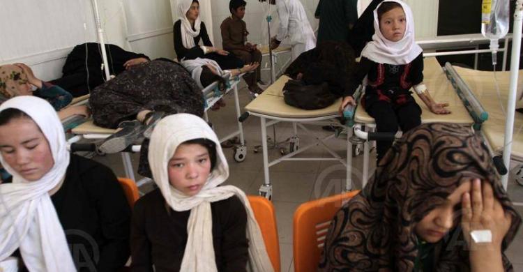 أصيبت 124 تلميذة في مدرسة للتعليم المتوسط بولاية هرات، غربي‫ ‏أفغانستان‬، اليوم الاثنين، بحالات تسمم، جراء استنشاقهن لغاز سام، جرى رشه داخل المدرسة الواقعة بببلدة "جبرائيل"، قبيل دخلوهن الصفوف الدراسية
