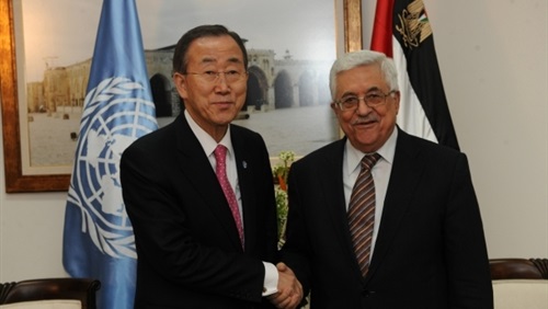 وجاء اللقاء مع كي مون قبل ساعات من إلقاء عباس خطاب فلسطين أمام الجمعية العامة للأمم المتحدة مساء اليوم.