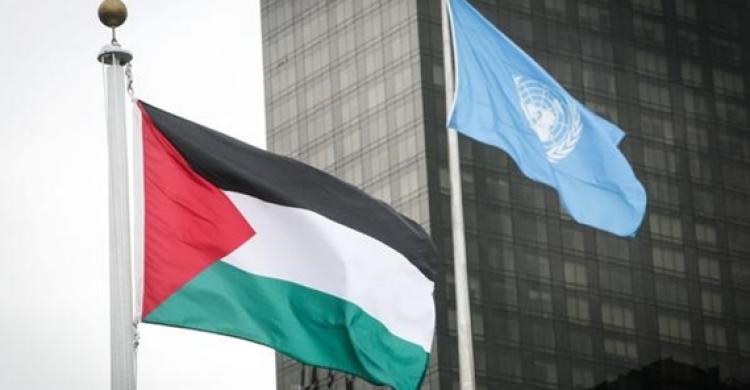 ورفع العلم في الهيئة الدولية إلى جانب أعلام الدول الـ193 الأعضاء في الأمم المتحدة والفاتيكان الذي يتمتع ممثل فلسطين بوضع دولة مراقب غير عضو.