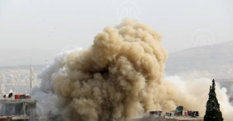 وأفاد بيان صادر عن الهيئة العامة للثورة السورية، أن طائرات النظام الحربية قصفت بالبراميل المتفجرة والقنابل الفراغية، الأحياء السكنية الواقعة تحت سيطرة المعارضة.